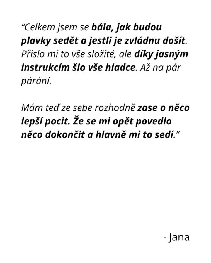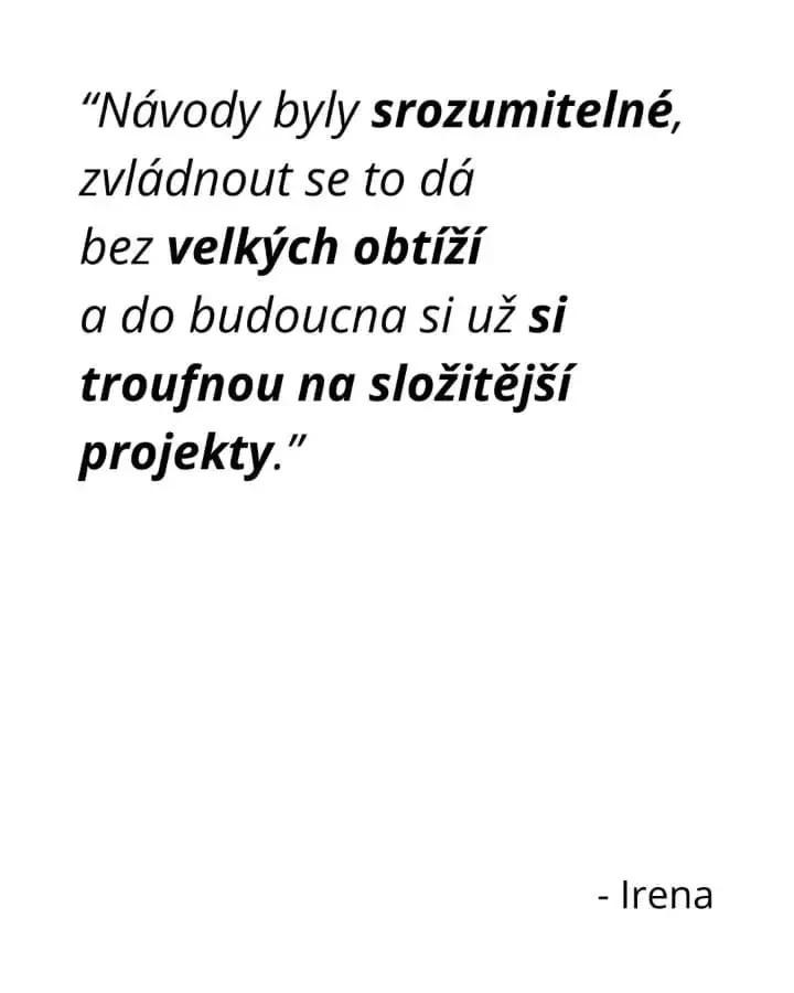 - Šít budeme společně v jednotném tempu. A na všechny dotazy Ti odpovím v podpůrné Facebookové skupině v psané podobě nebo na pravidelných živých vysíláních, takže budeš mít vždycky jasno v tom, co dělat.
